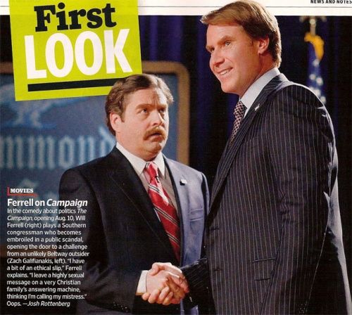 El que regresa a la pantalla grande, es el cómico Will Ferrell quién hará de un político en su próxima producción titulada: The Campaign (antes Dog Fight), comedia cuyo reparto encabeza Will Ferrell y Zach Galifianakis.