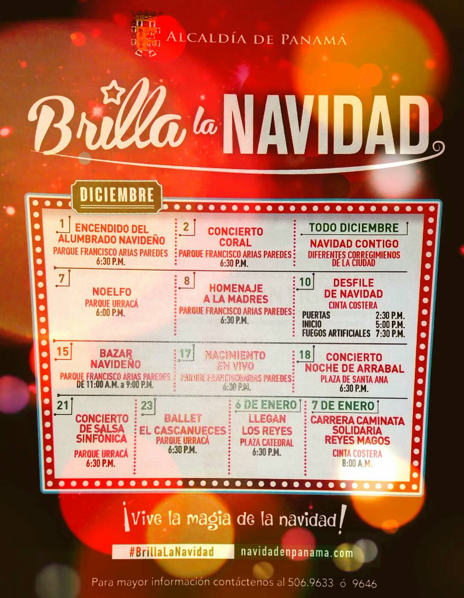 Al respecto, el Municipio de Panamá señaló “en Navidad, la ciudad de Panamá se ilumina para brindarle a las familias panameñas un espacio mágico. Se trata del alumbrado navideño bajo el concepto Brilla la navidad, que para este 2017 amplía su cobertura incorporando trece puntos nuevos”.