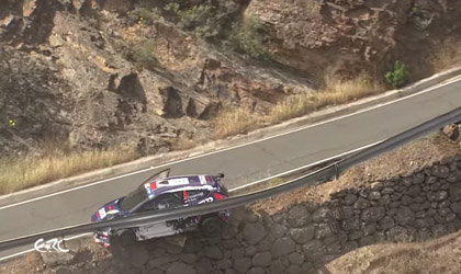 Tomasz Kasperczyk, un piloto de rally de 24 años que participaba en el rally de las Islas Canarias, se salvó 'en la raya' de una verdadera tragedia cuando luego de un aparatoso choque su auto quedara al borde de un precipicio sostenido solo por una defensa que evitó cayera al vacío.